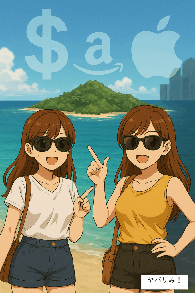 「タックスヘイブンの真実:世界経済の裏側で何が起きているのか?」のアイキャッチ画像です。南国の島に積み上げられた巨額の紙幣が、その「ヤバい」実態を物語っています。私たちの知らない裏側で、富はどこへ消えているのか?